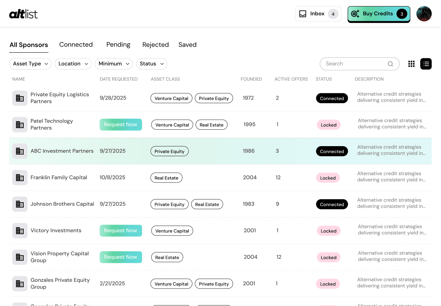 No gatekeepers, no country club — just direct access to top alternative investment sponsors.